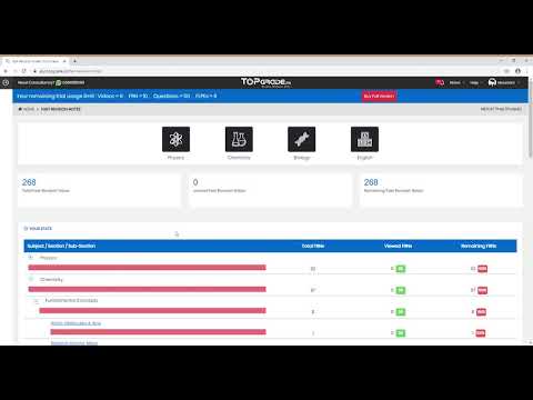 Clicking on the Fast Revision Notes icon will take you to home page of this module where you can see icons of your subjects, numbers of total watched and remaining Fast Revision Notes. You can also look at your stats regarding your progress in Fast Revision Notes. Using these stats you will be able to identify which subjects, which sections in respective subjects and which sub-sections in respective sections are lagging behind.
